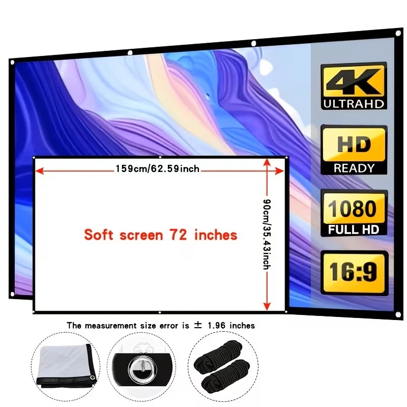 محمولة قابلة للطي HD 16:9، مناسبة للمسرح المنزلي، الدعم المزدوج الجانبي في الهواء الطلق والداخل، التجمعات العائلي