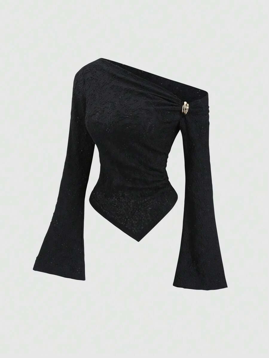 ذات كتف أسيمتري وقماش ملمس غير متماثل الذيل